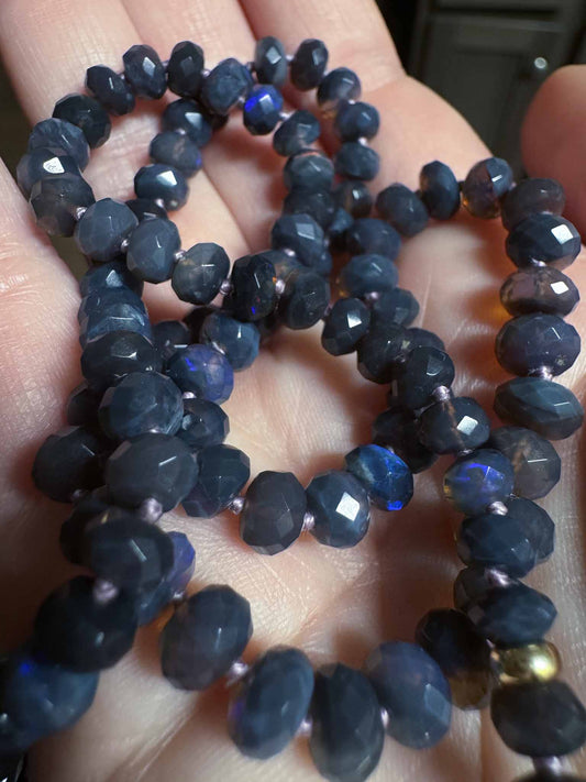 Stellar Australian Black Opals Knotted Necklace 14k Gold