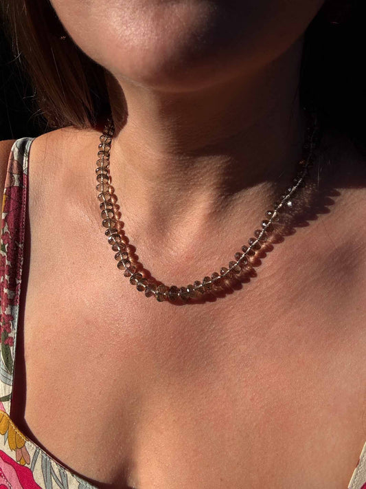 Smoky Quartz Knotted Strand Necklace Solid Gold
