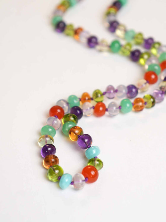 Prism Burst III - Mixed Gemstone Knotted Candy Necklace 14k