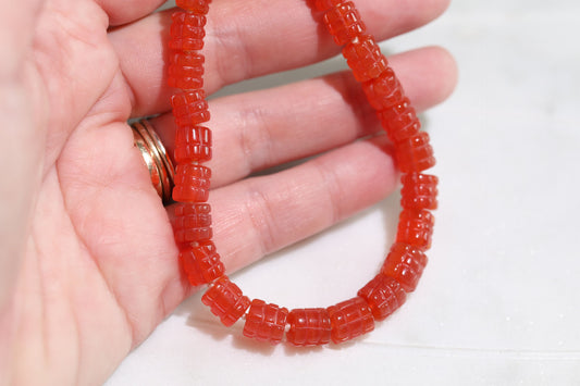 Unique Carved Carnelian Knotted Bead Necklace 14k