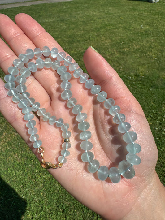 Milky Aquamarine Knotted Candy Bead Necklace 14k