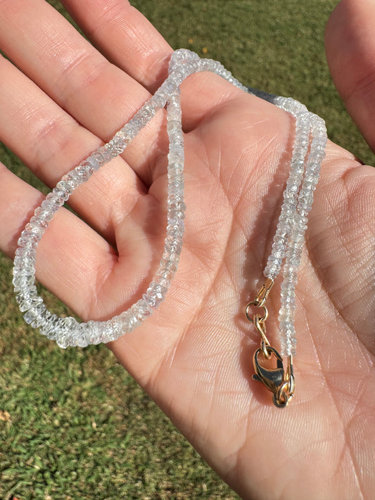 Natural Powder Blue Sapphires Beaded Necklace 14k