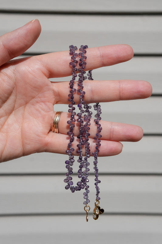 Purple Sapphire Teardrops Knotted Candy Bead Necklace 14k