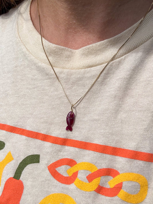 Raspberry Red Natural Tourmaline Fishy Charm 14k