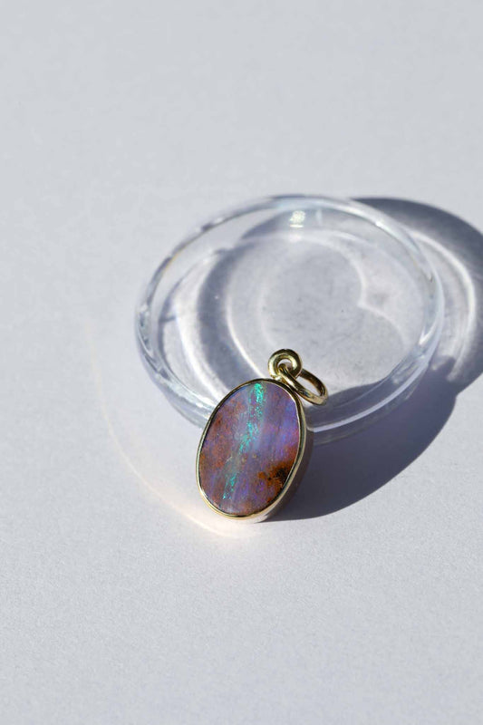 Lightning Ridge Crystal Opal Faceted Charm 14k