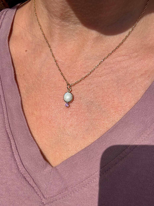 Celestial Promise Charm - Australian Crystal Opal & Rhodolite Garnet 14k Gold Charm