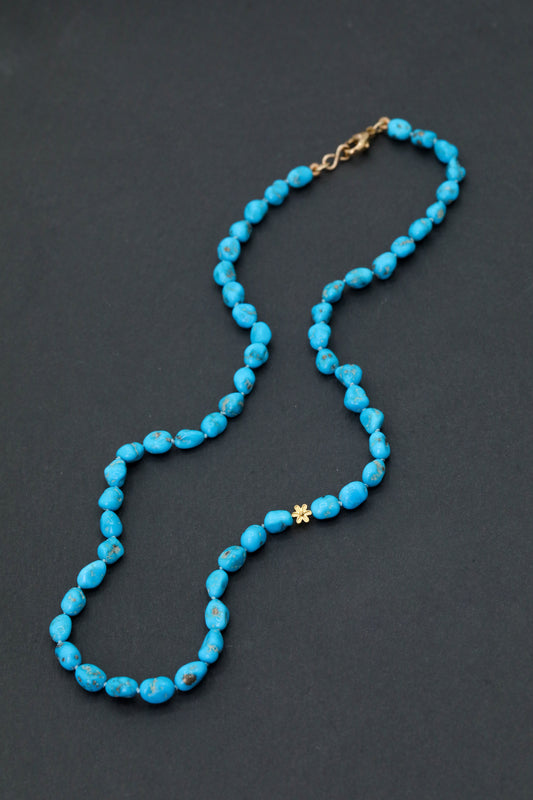 Hansel II - Arizona Turquoise Beaded Necklace Solid Gold