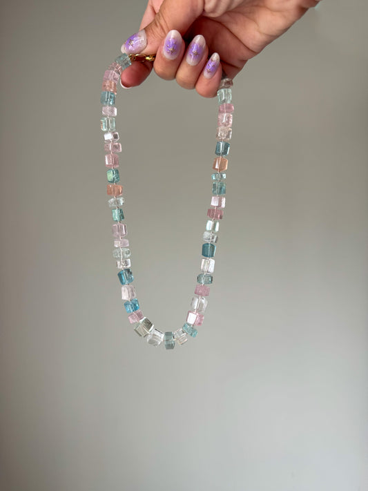 Aquamarine Rock Candy Knotted Bead Necklace 14k