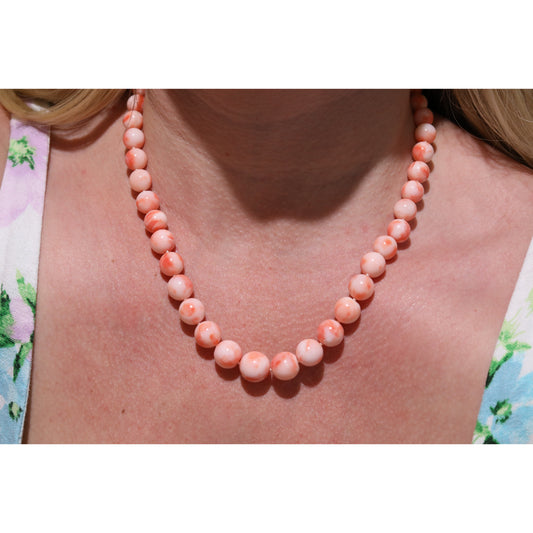 Natural Angel Skin Coral Knotted Bead Necklace 14k Gold