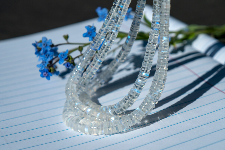 Natural Powder Blue Sapphires Beaded Necklace 14k