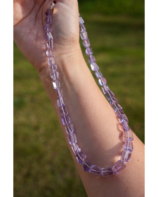 Plum Purple Stichtite Dainty Beaded Necklace 14k