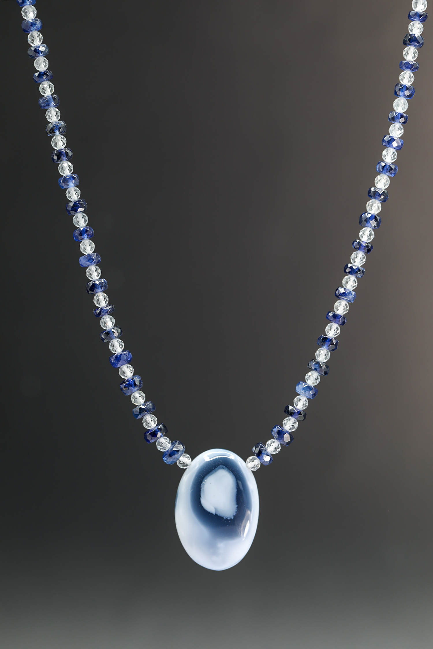 One of a Kind Mixed Gem - Blue Oregon Opal, Kyanite, White Topaz Necklace 14k