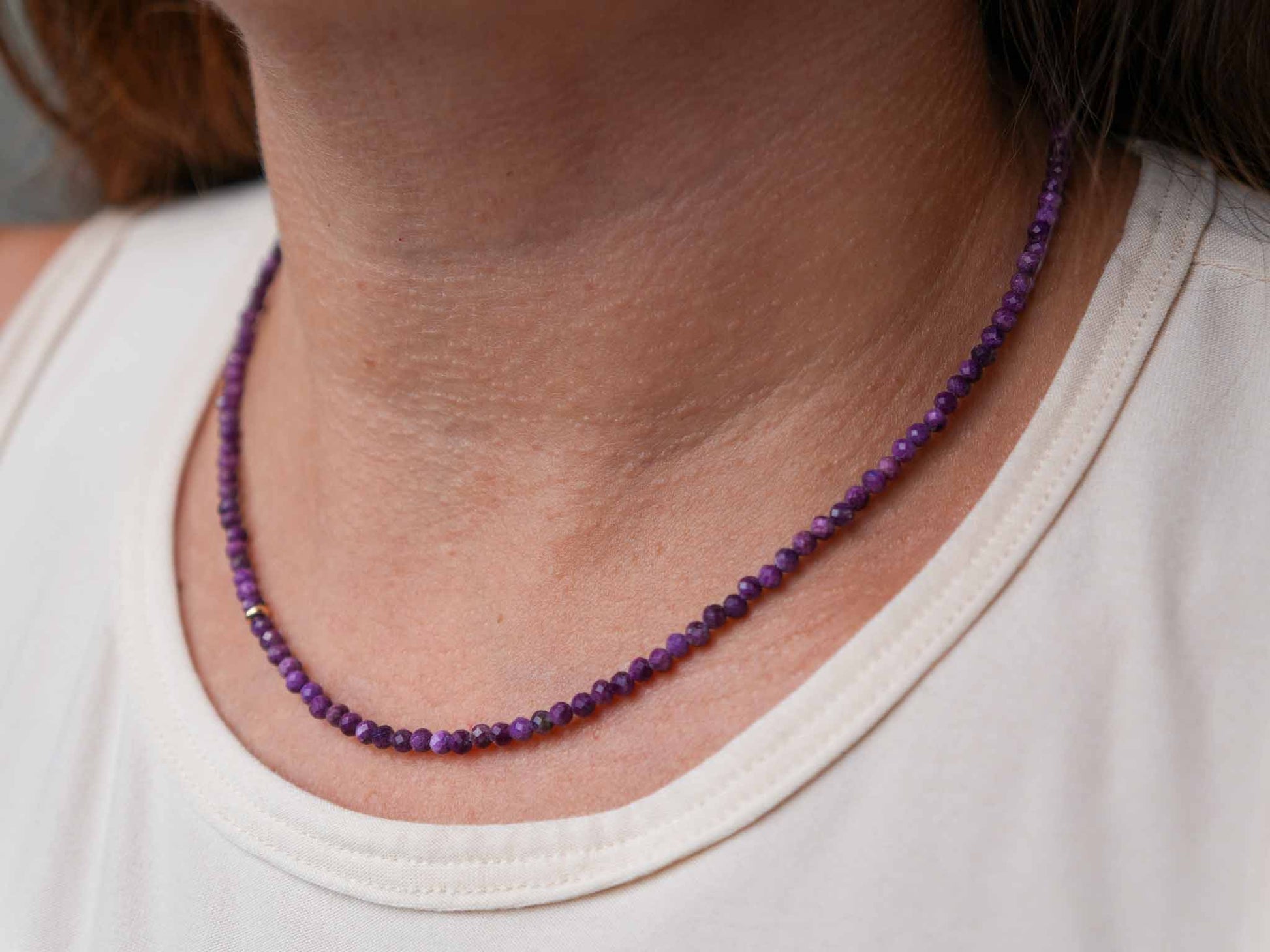 Plum Purple Stichtite Dainty Beaded Necklace 14k