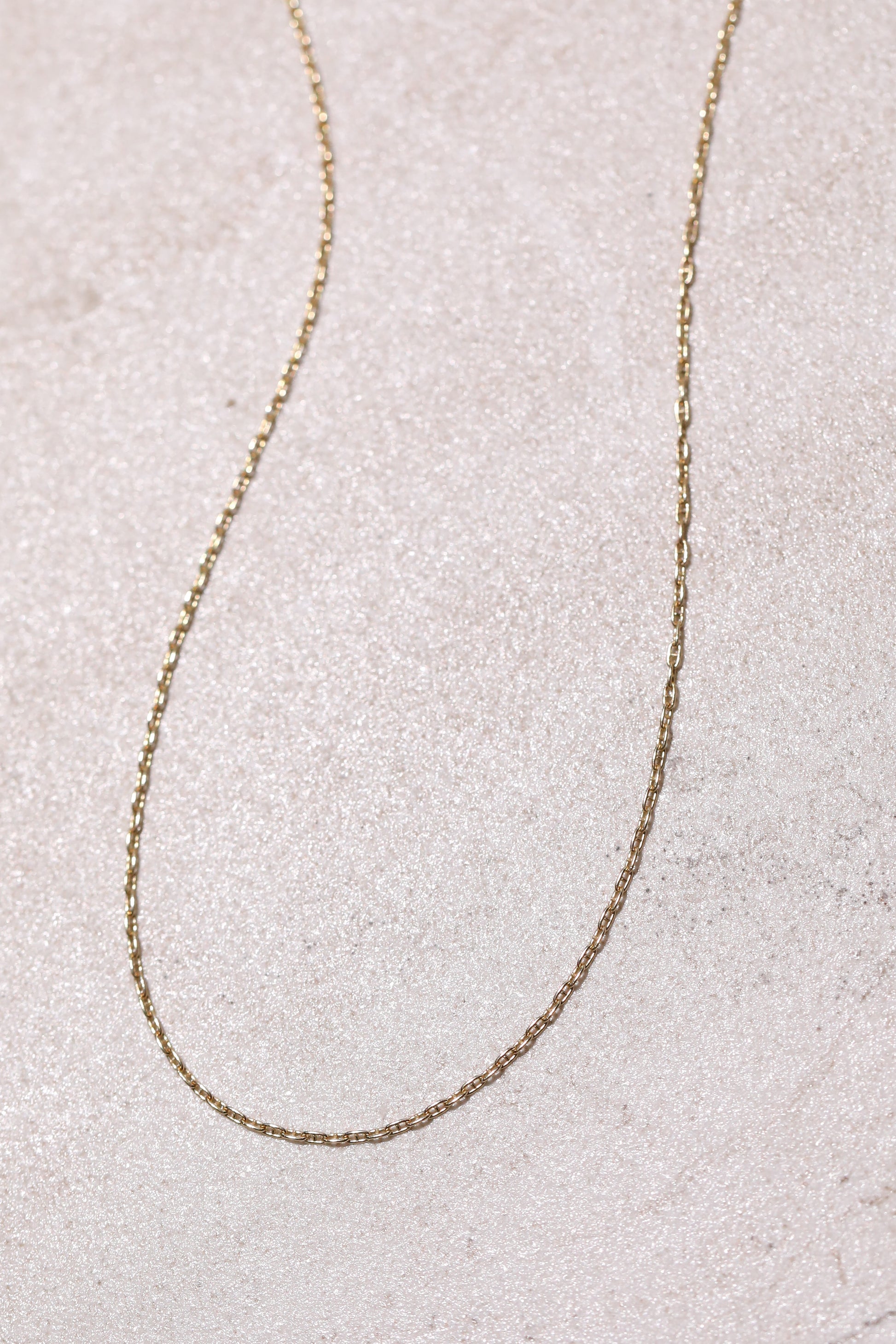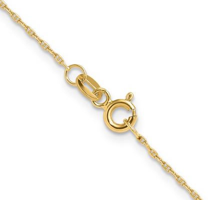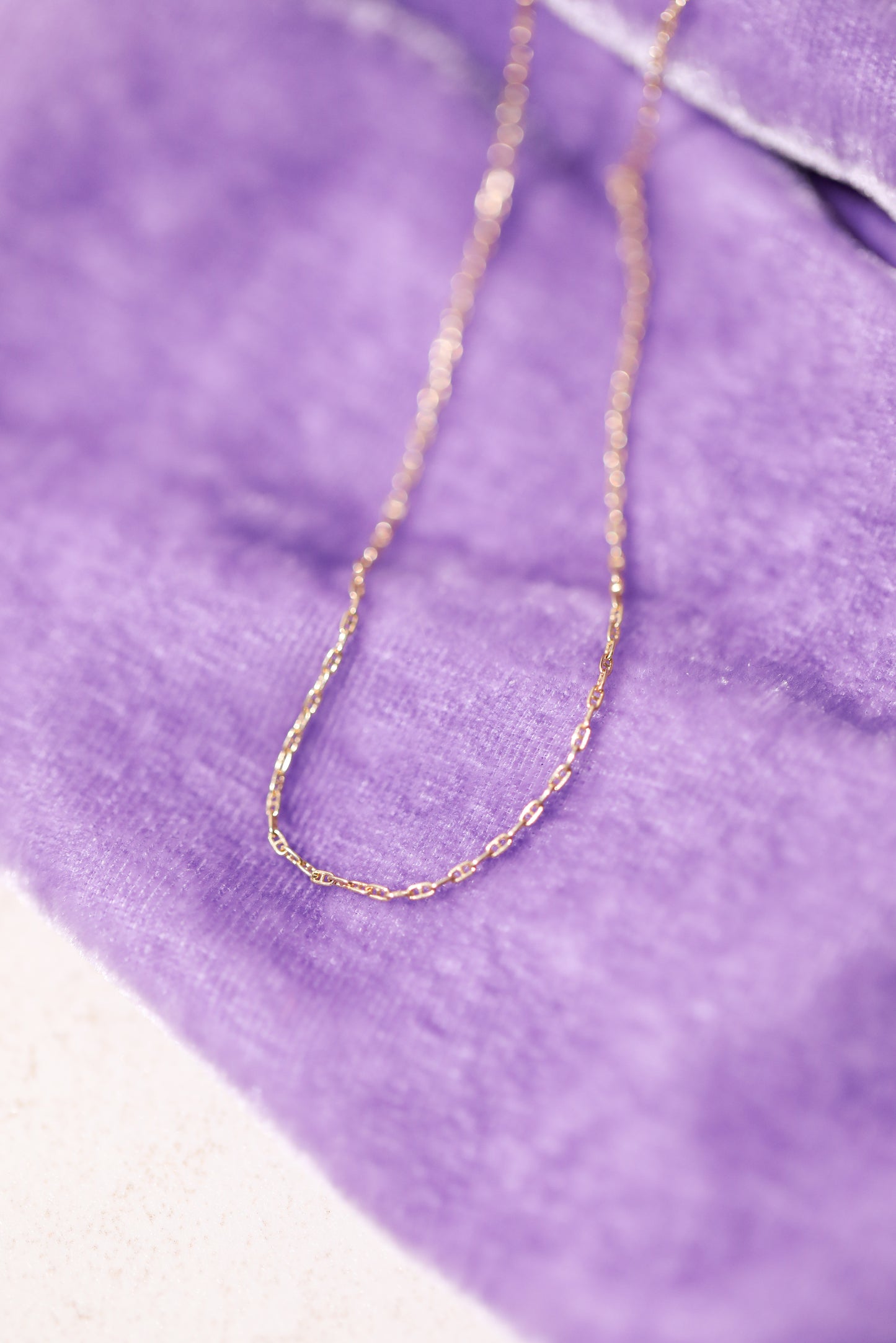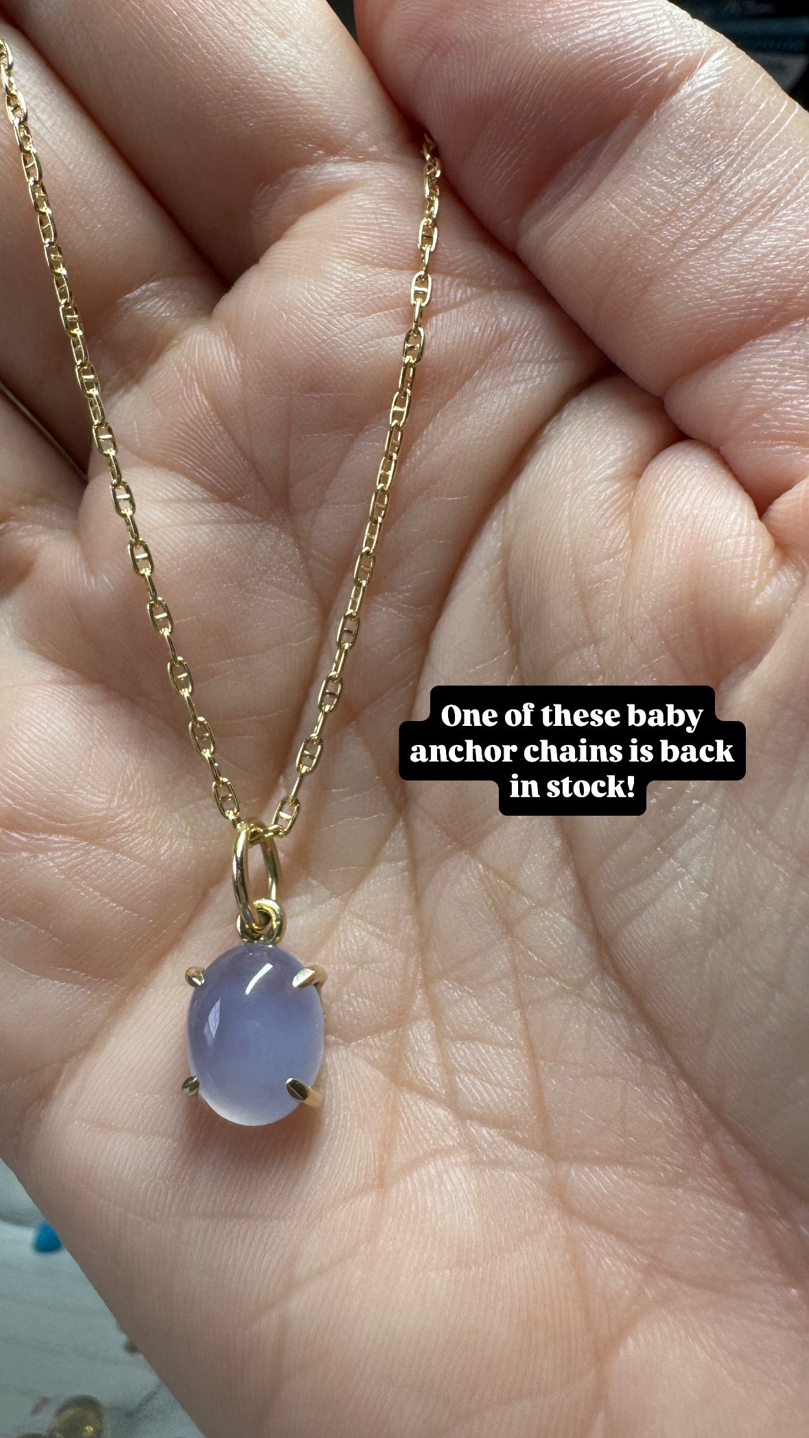 This baby sized anchor chain in 14k yellow gold is perfect for any charm or pendant. It goes and pairs so well with all of our gemstone charms set in gold! A match made in heaven! The style of the chain and the length make it just so perfect to display your favorite charms and showcase your individuality.