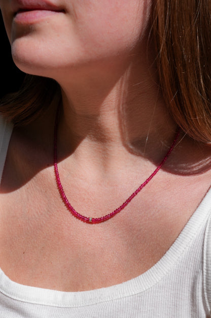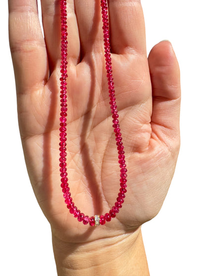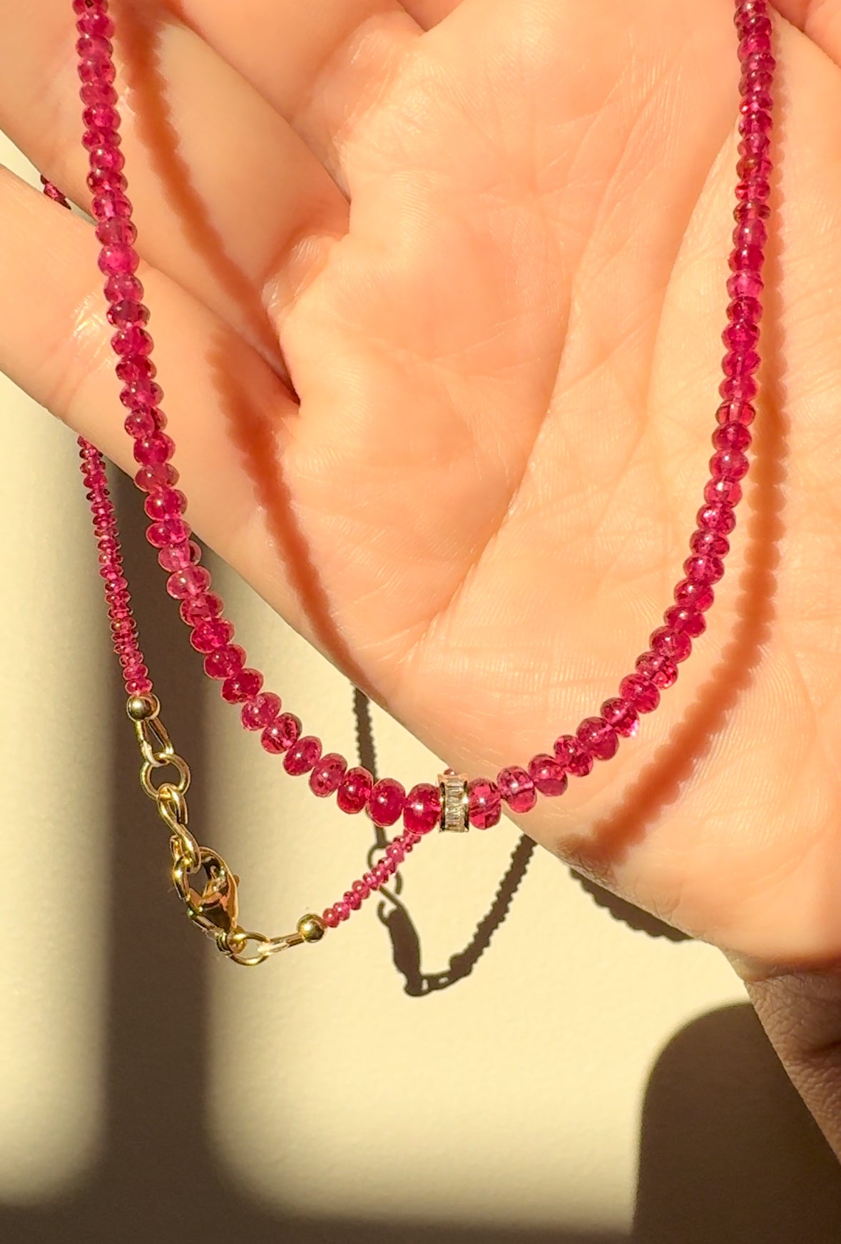Electric Ruby Red Spinel And Diamond 14k Gold Beaded Necklace