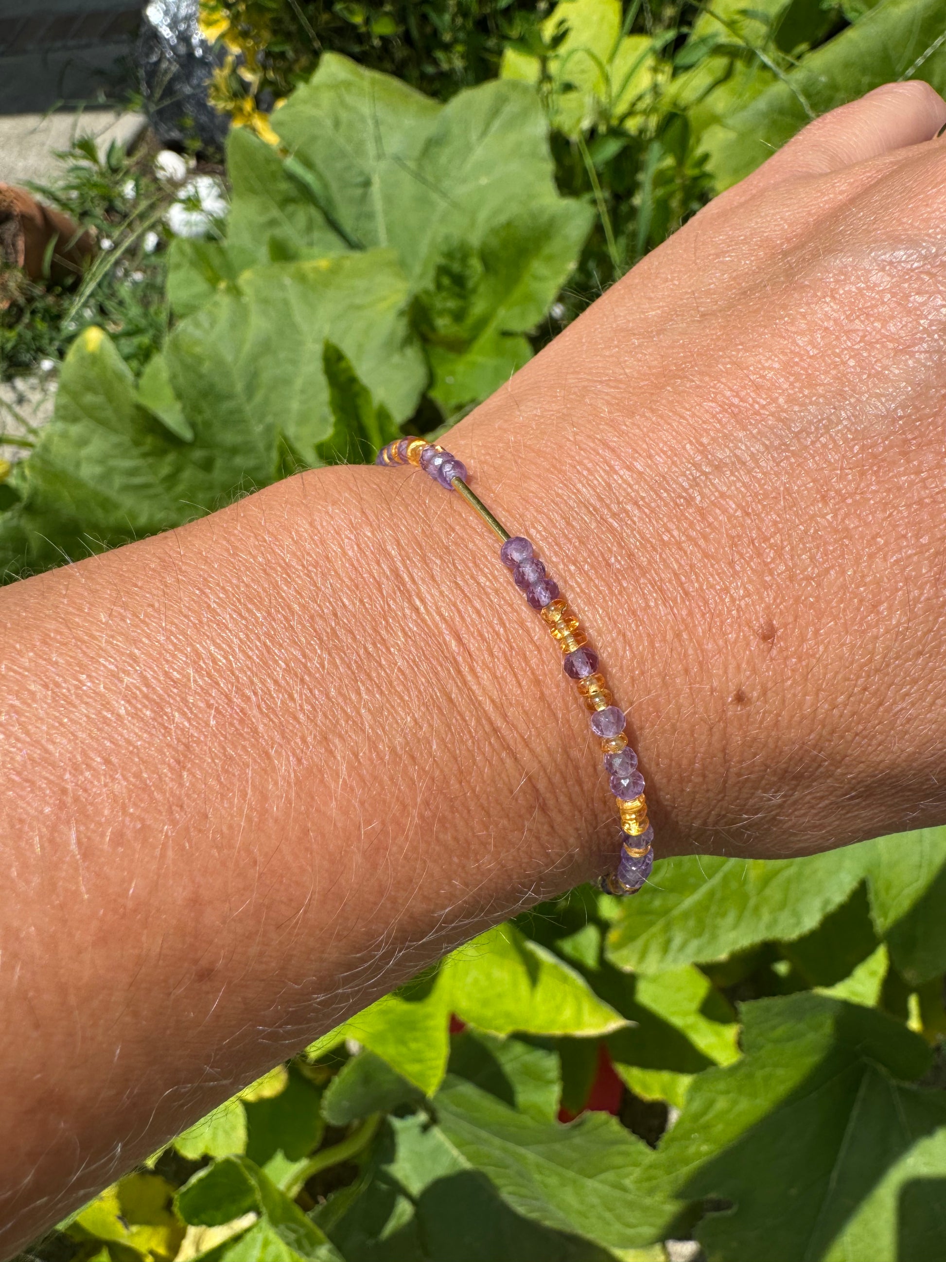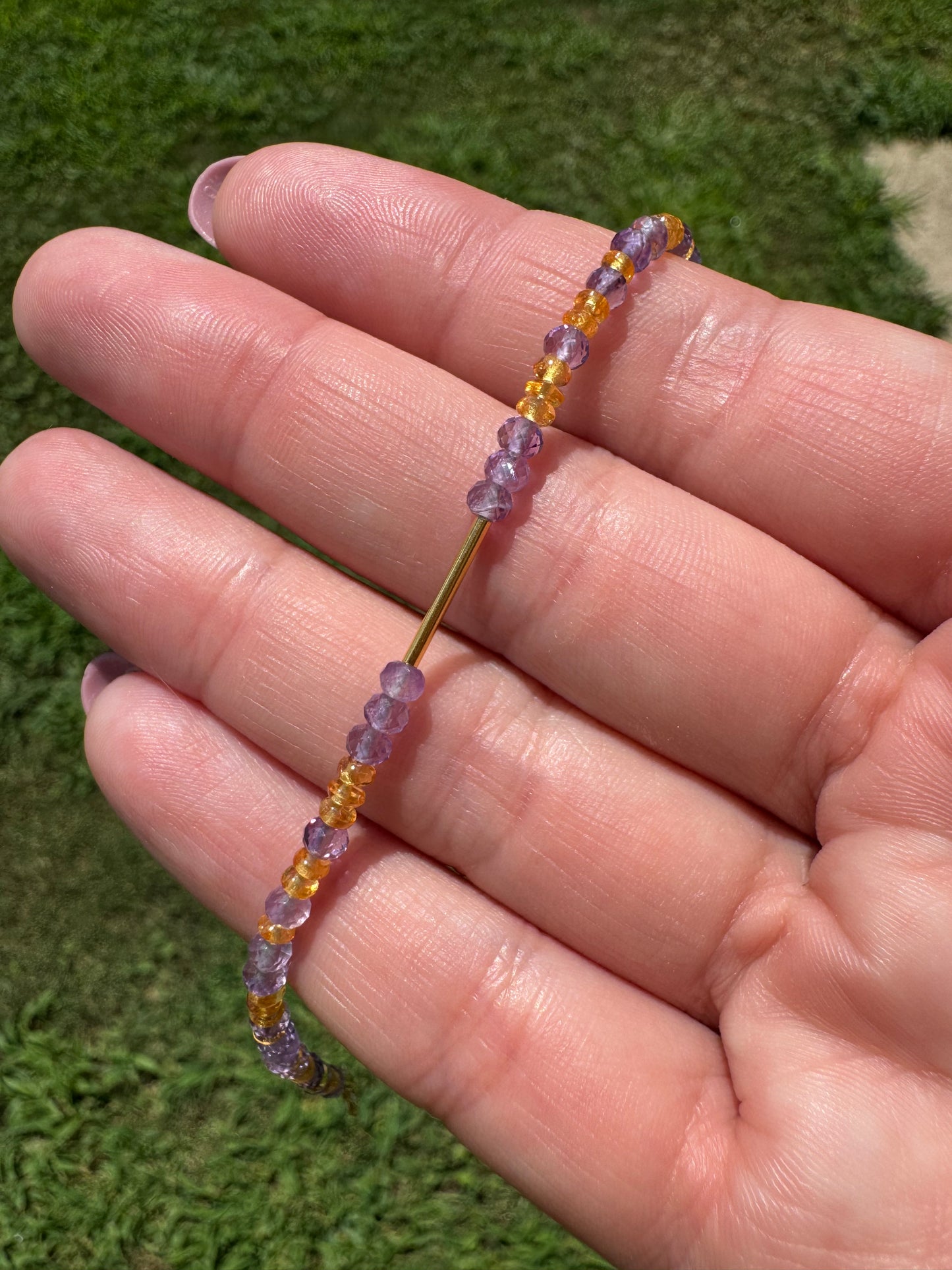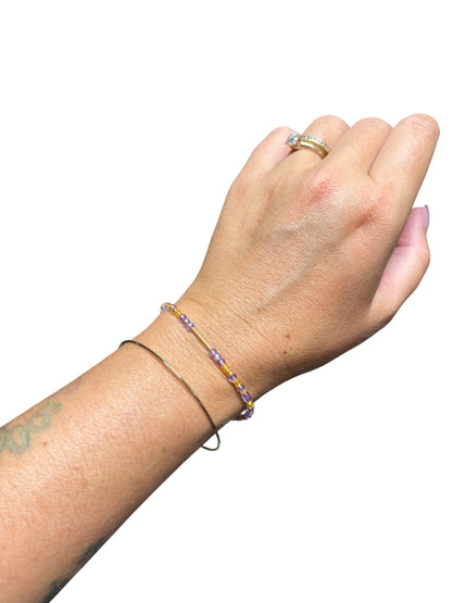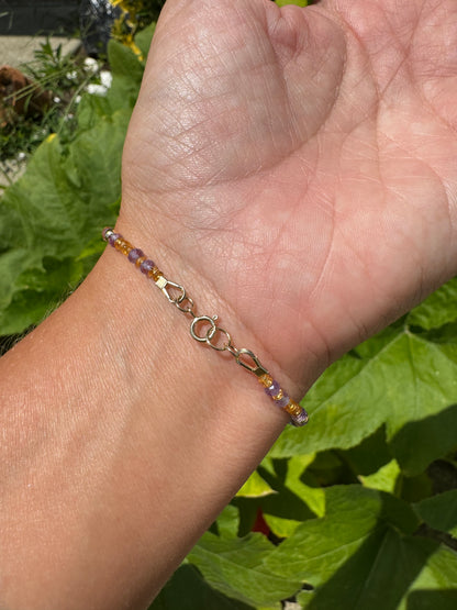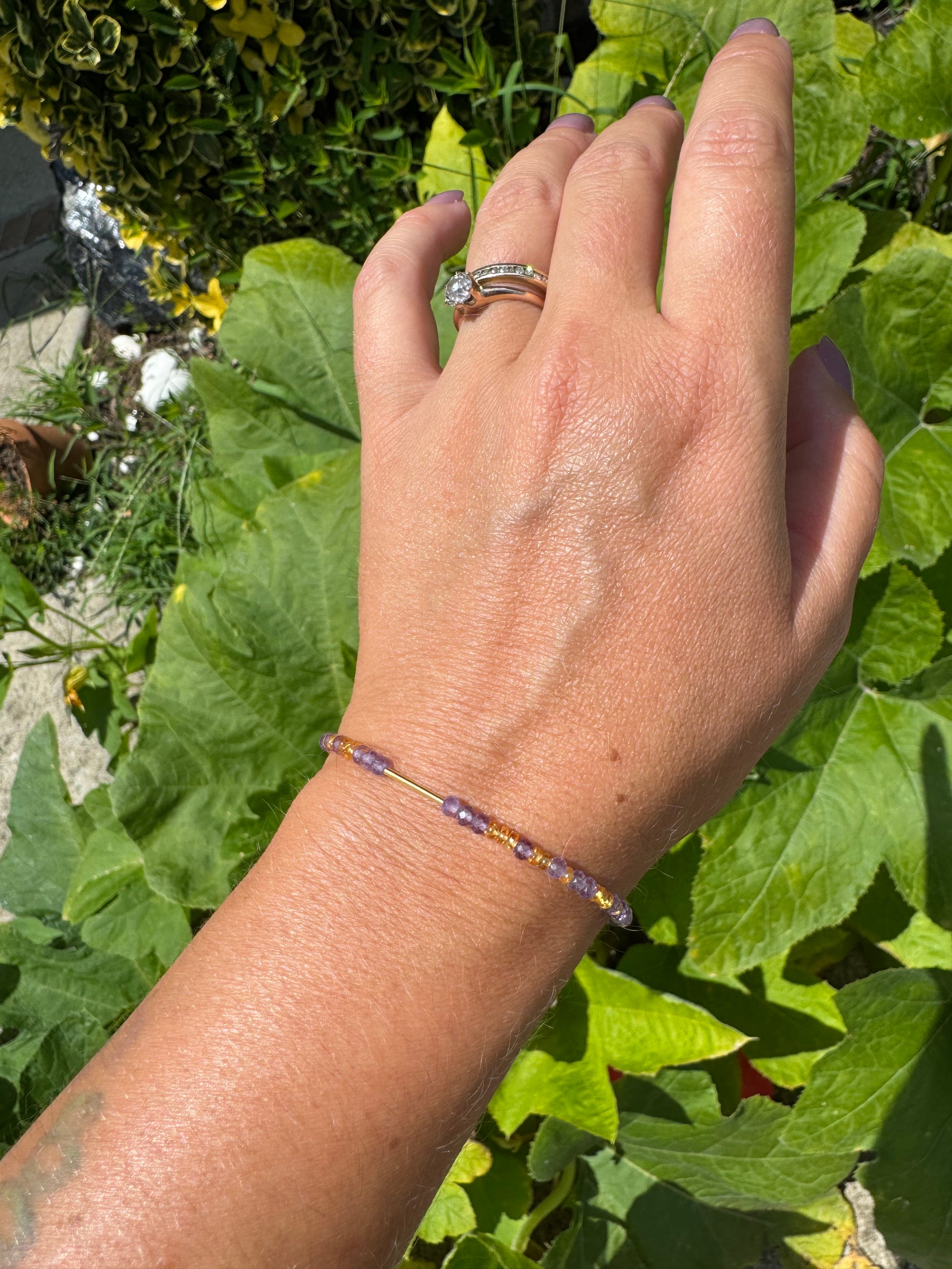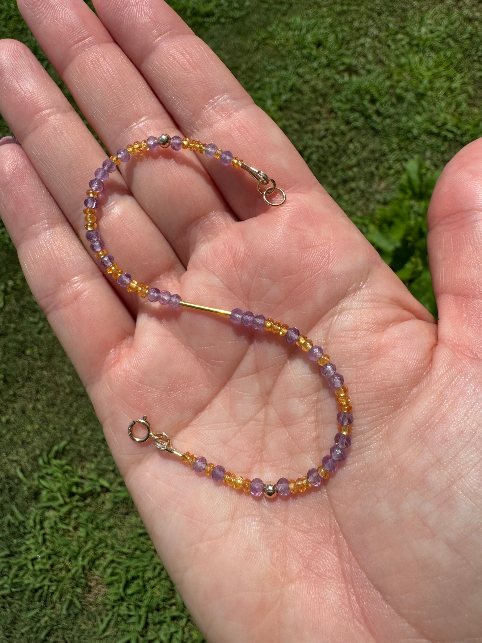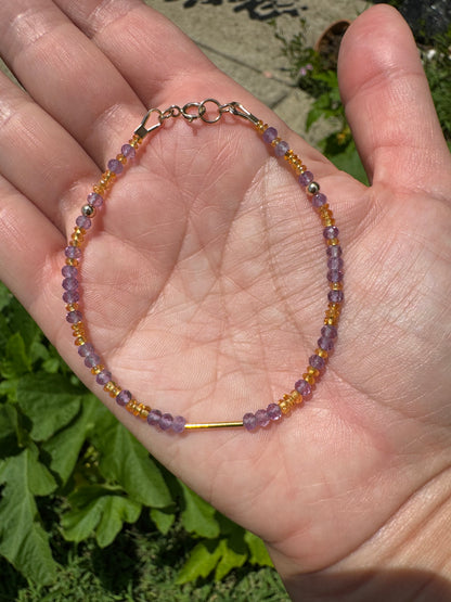 Scattered Light Bracelet 18k gold accent, Mandarin Garnet and Rose de France Amethyst, 14k clasp