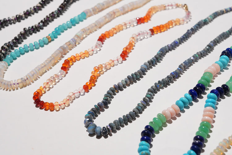 Mexican Fire Opal Beaded Necklace 14k Gold