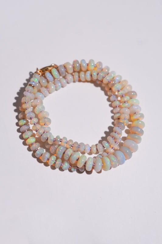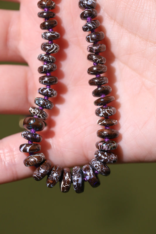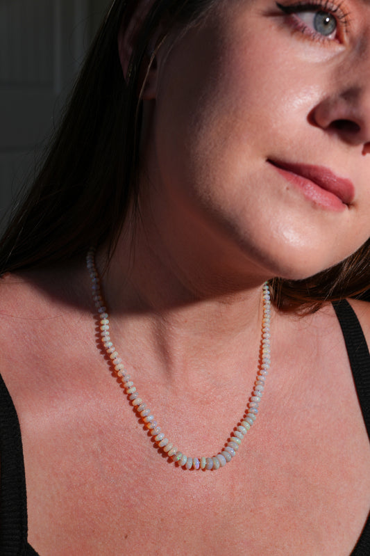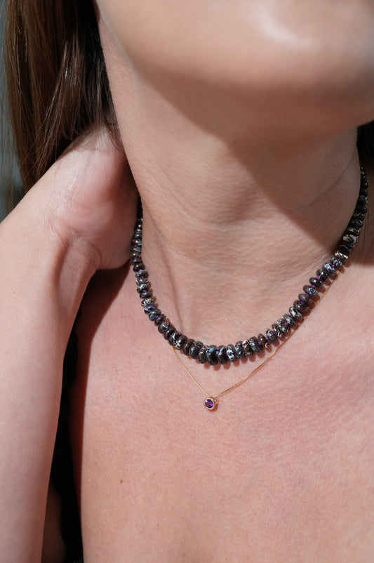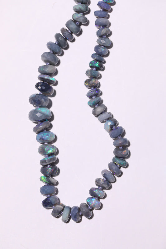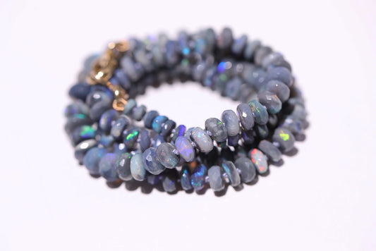 Starlight Necklace - Lightning Ridge Australian Black Opal Knotted Candy Necklace 14k Rose Gold