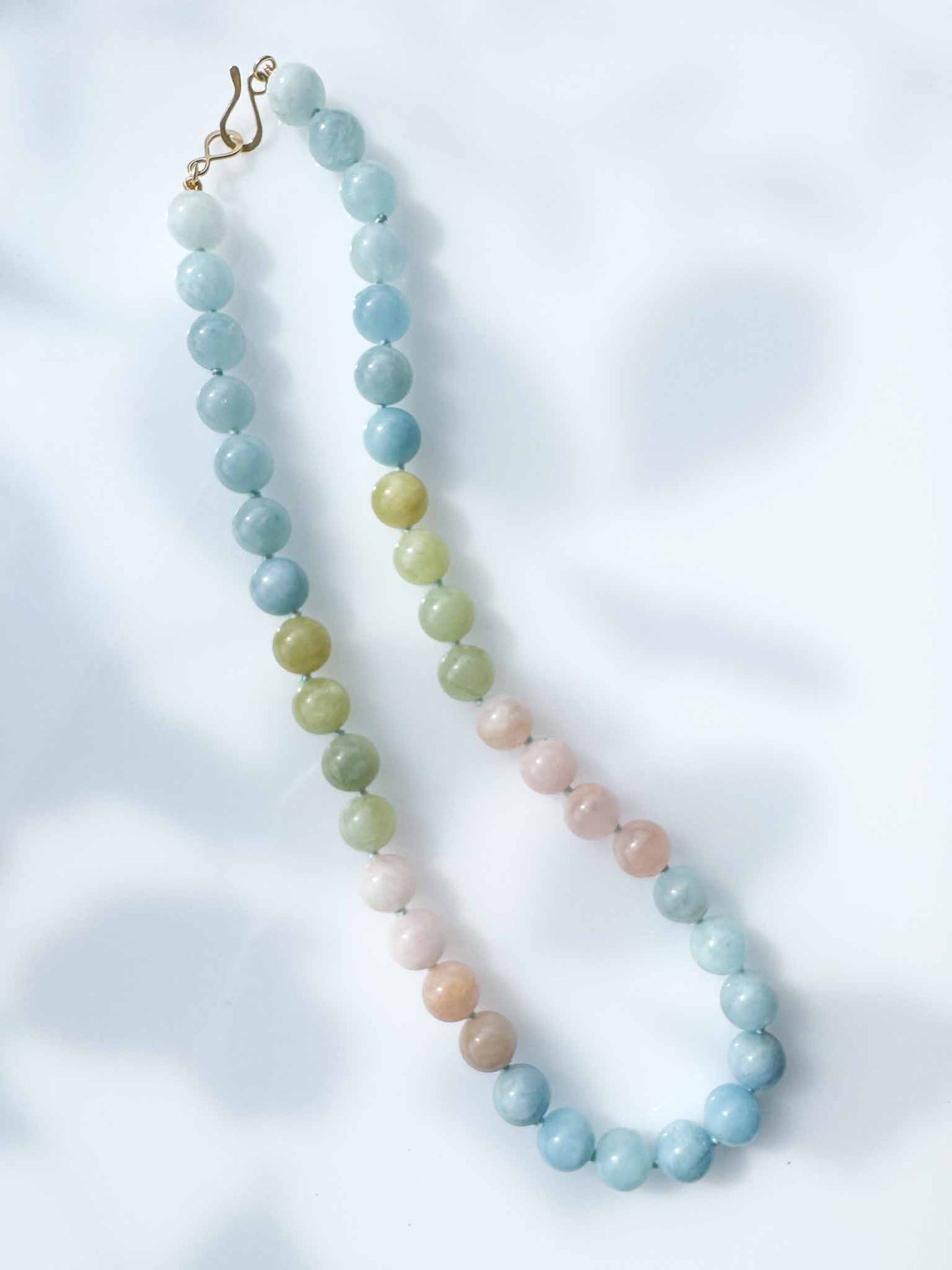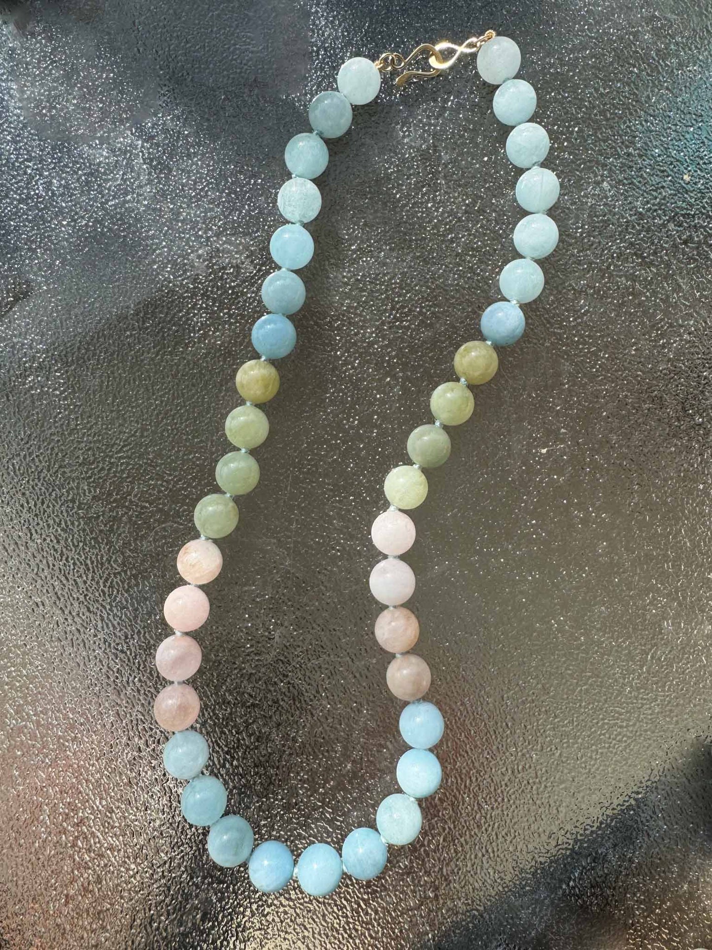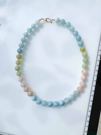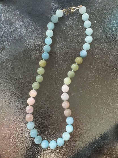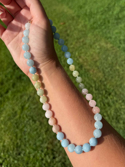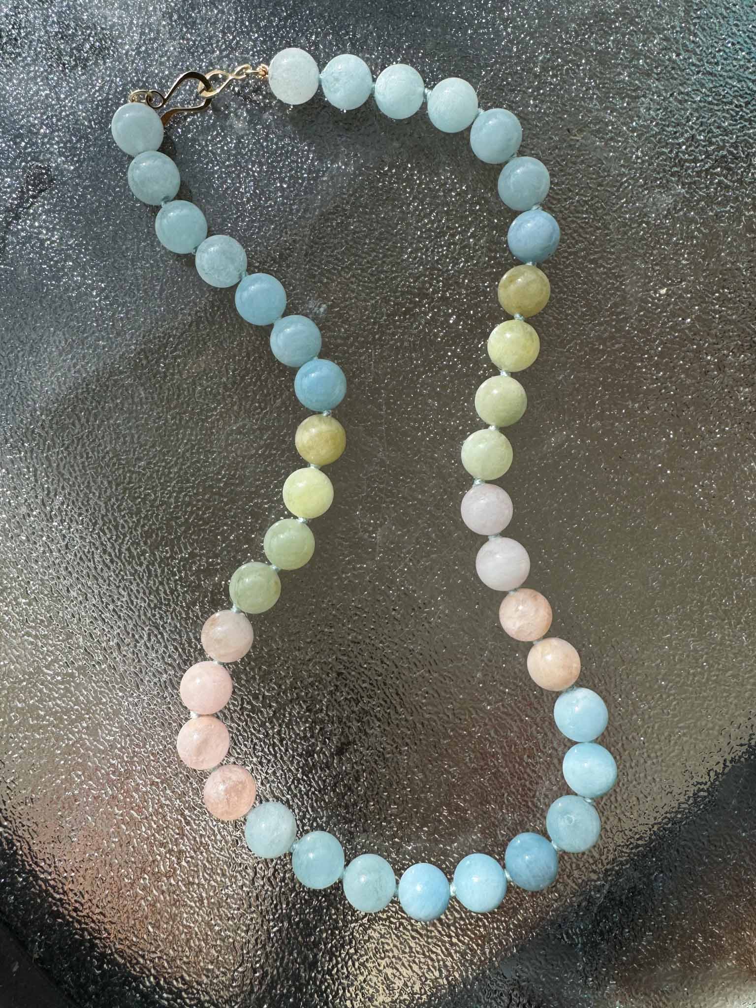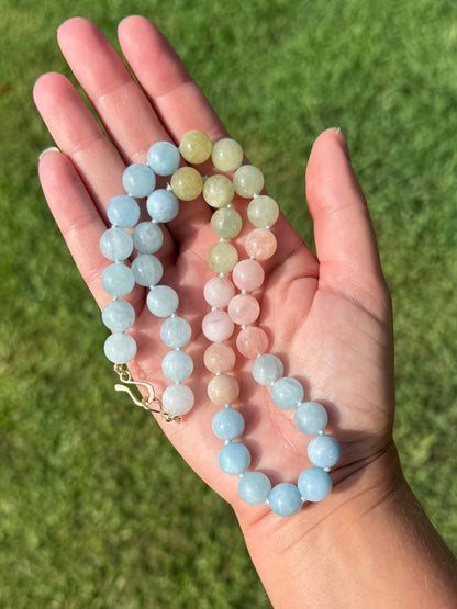 Big Pastel Aquamarine Knotted Candy Bead Necklace 14k