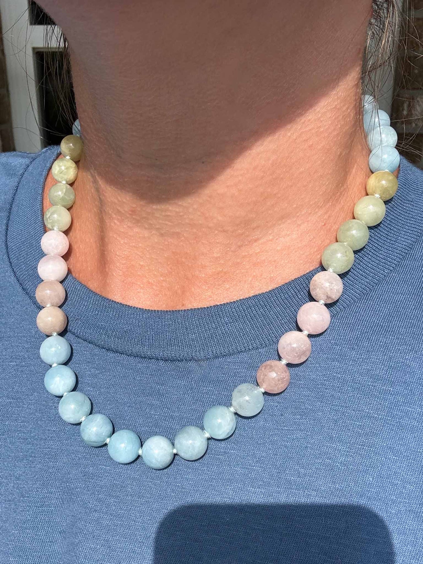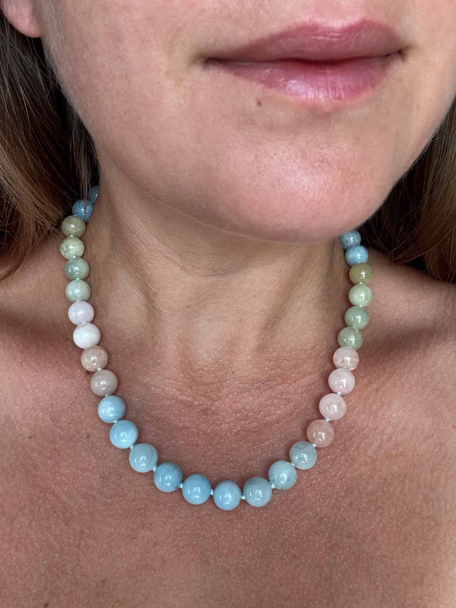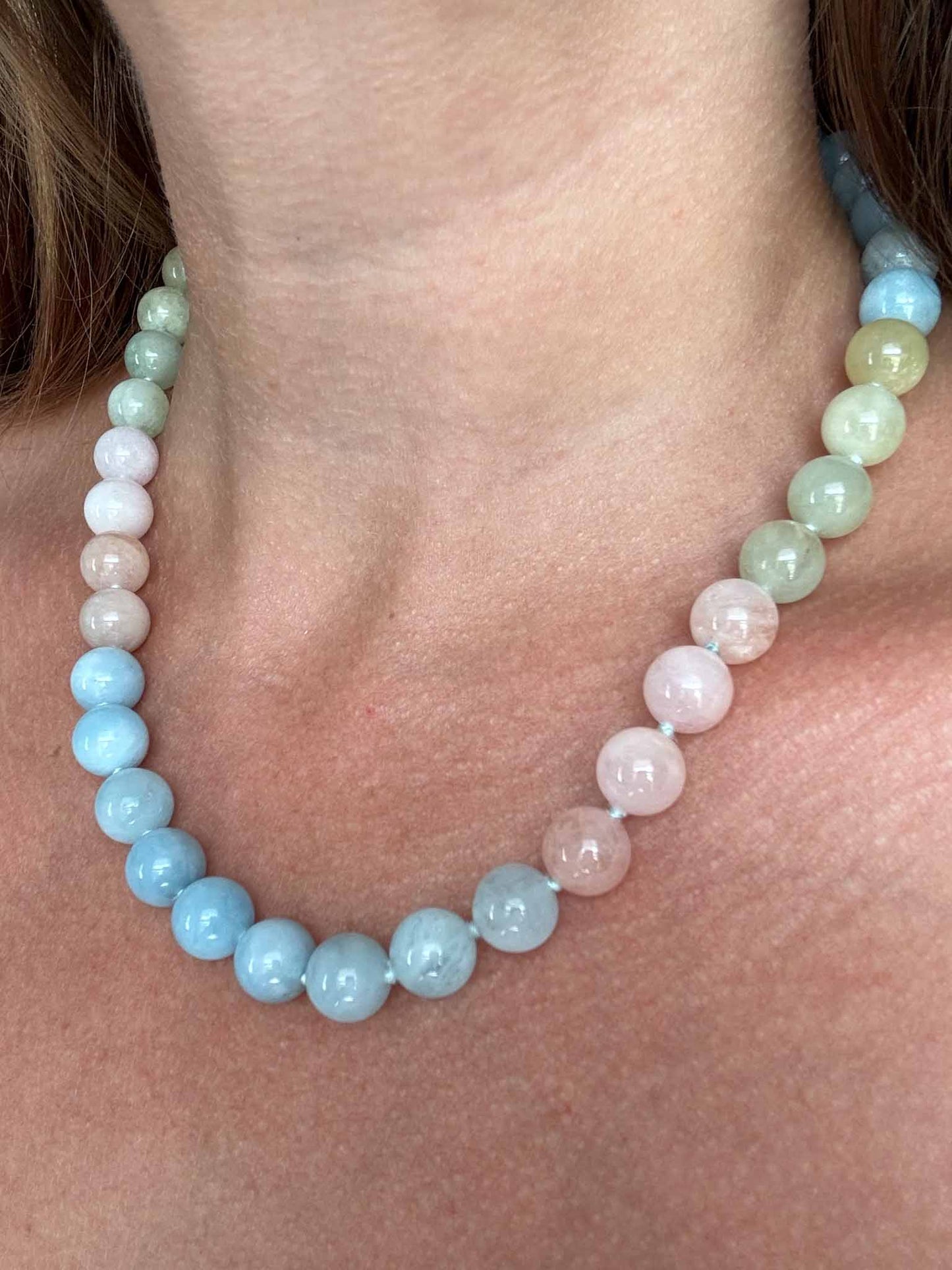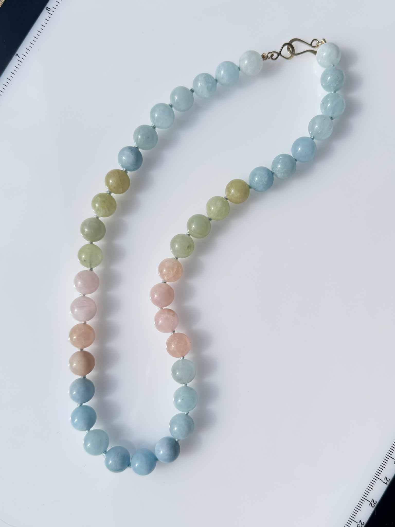 Big Pastel Aquamarine Knotted Candy Bead Necklace 14k