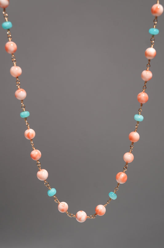 One of a Kind Angel Skin Coral and Amazonite Gold Aurum Necklace