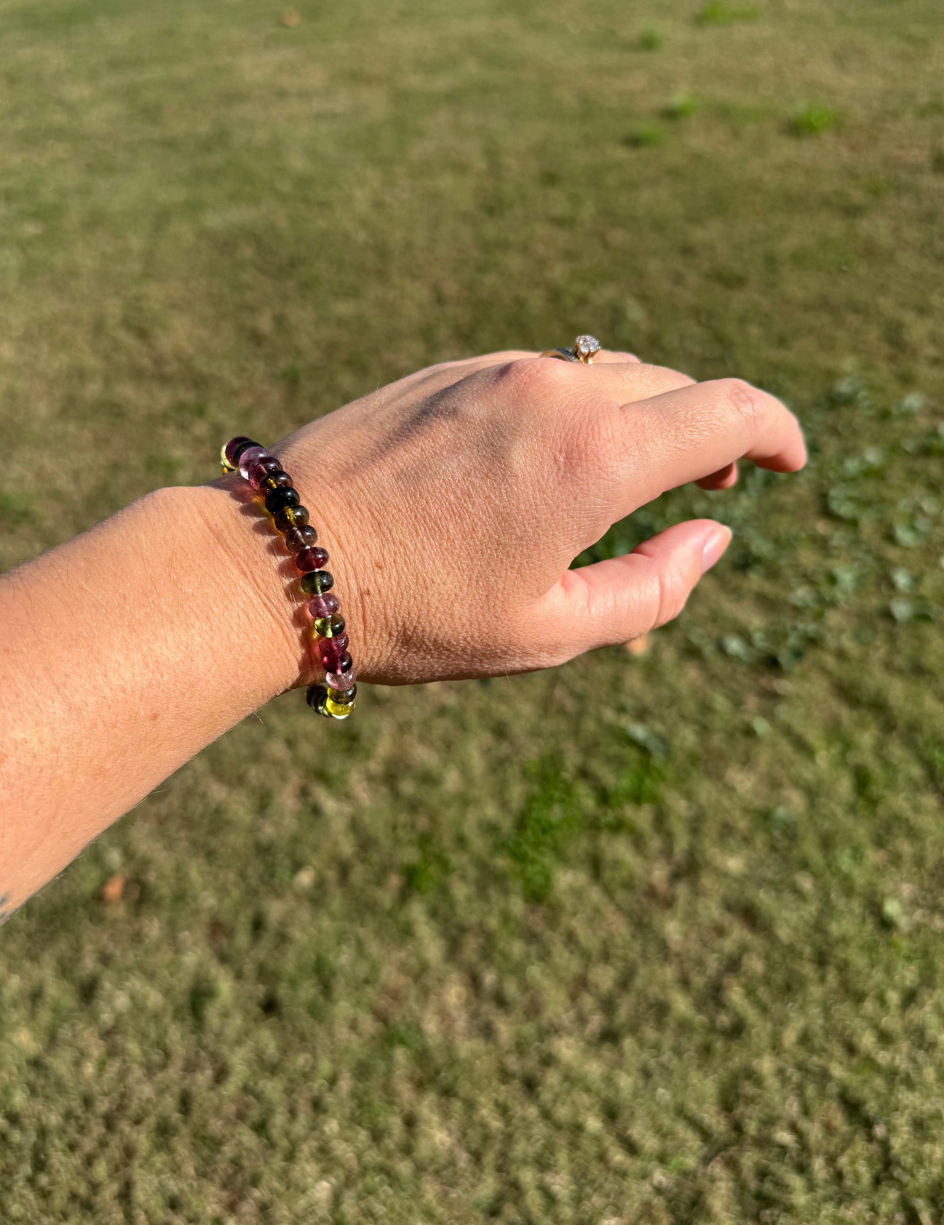 This handcrafted tourmaline bracelet is 7”, however size can be adjusted.