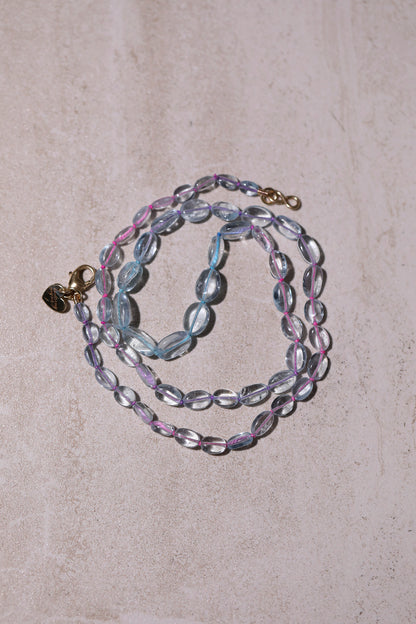 Stand out with this unique blue aquamarine beaded necklace with icy blue clear tumbles. The natural beauty of aquamarine combined with its cool hues makes it a timeless accessory.