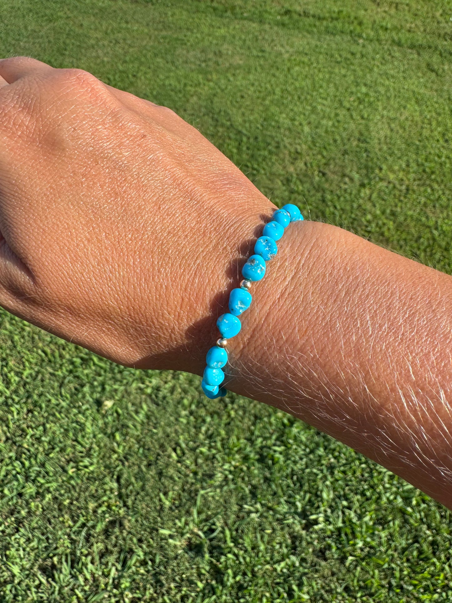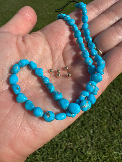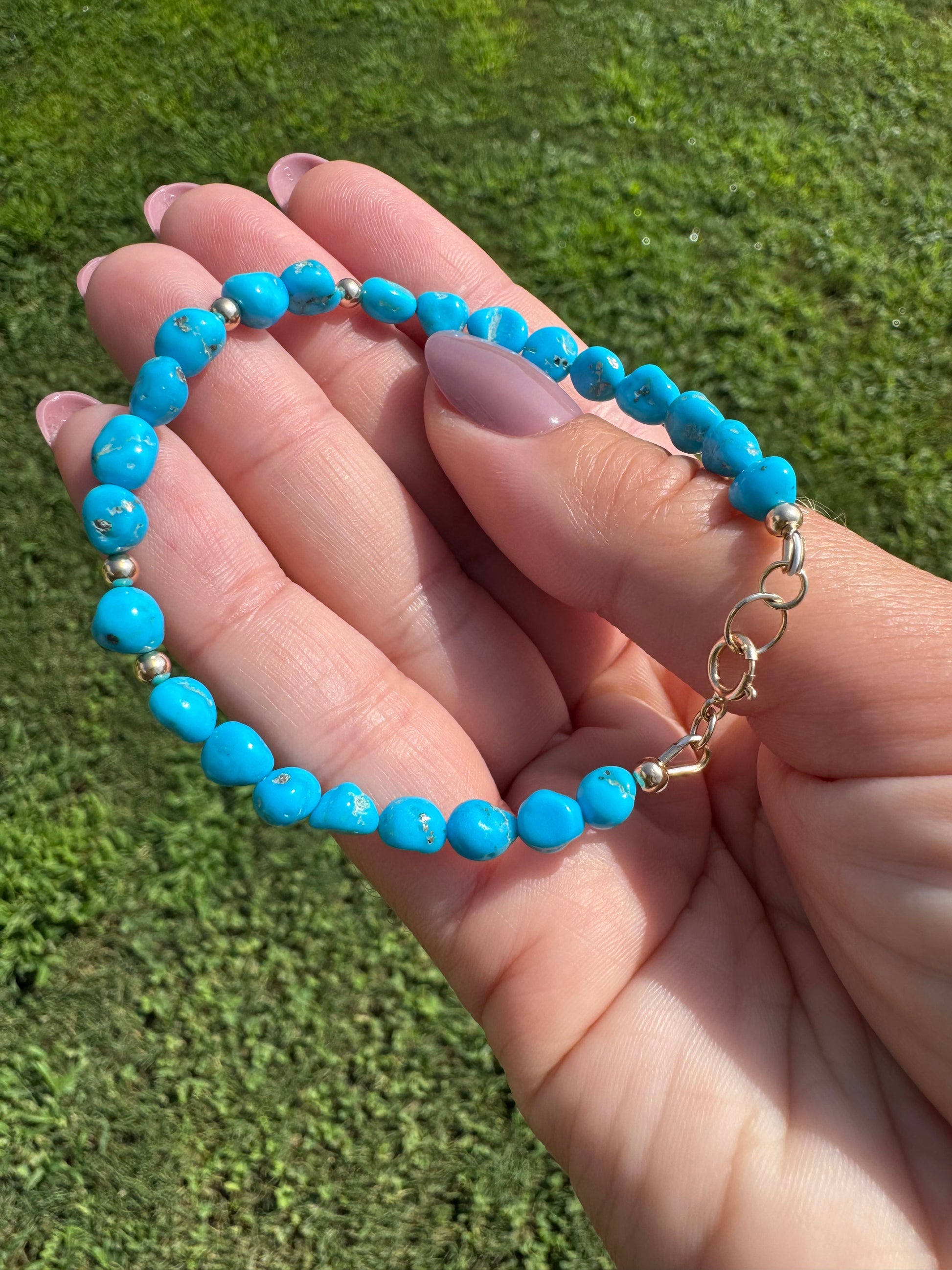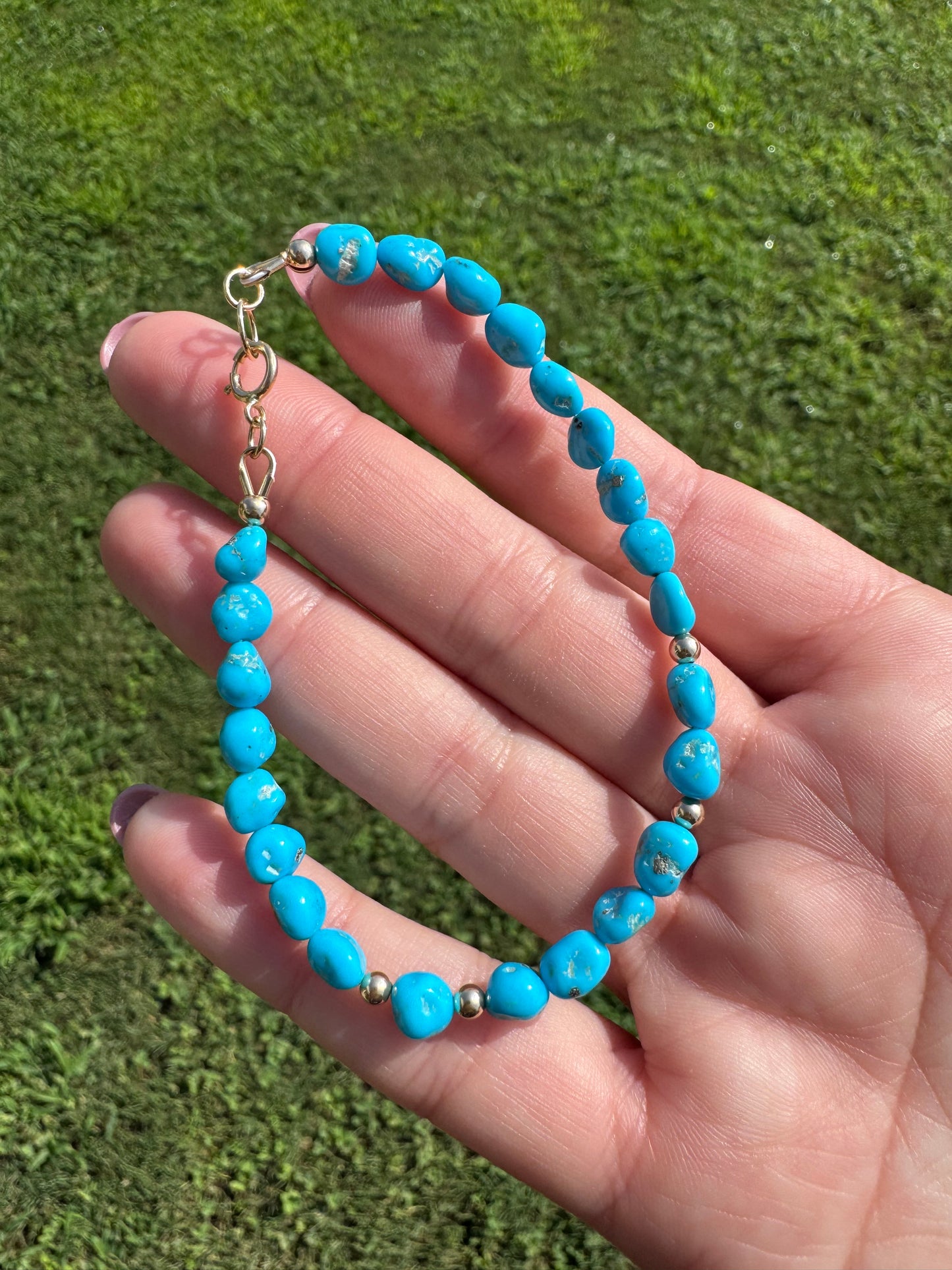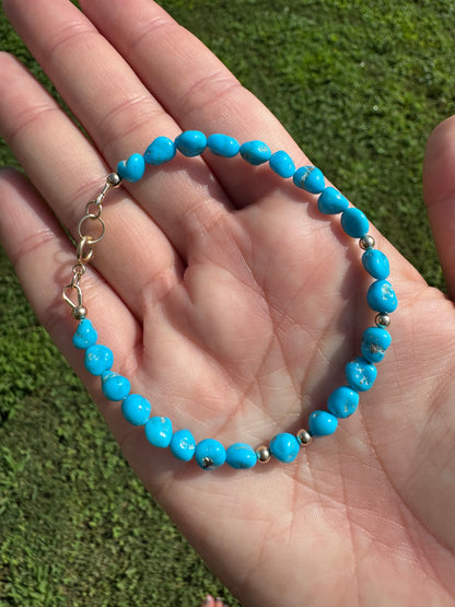 Custom Sleeping Beauty Turquoise Nuggets Beaded Bracelet 14k