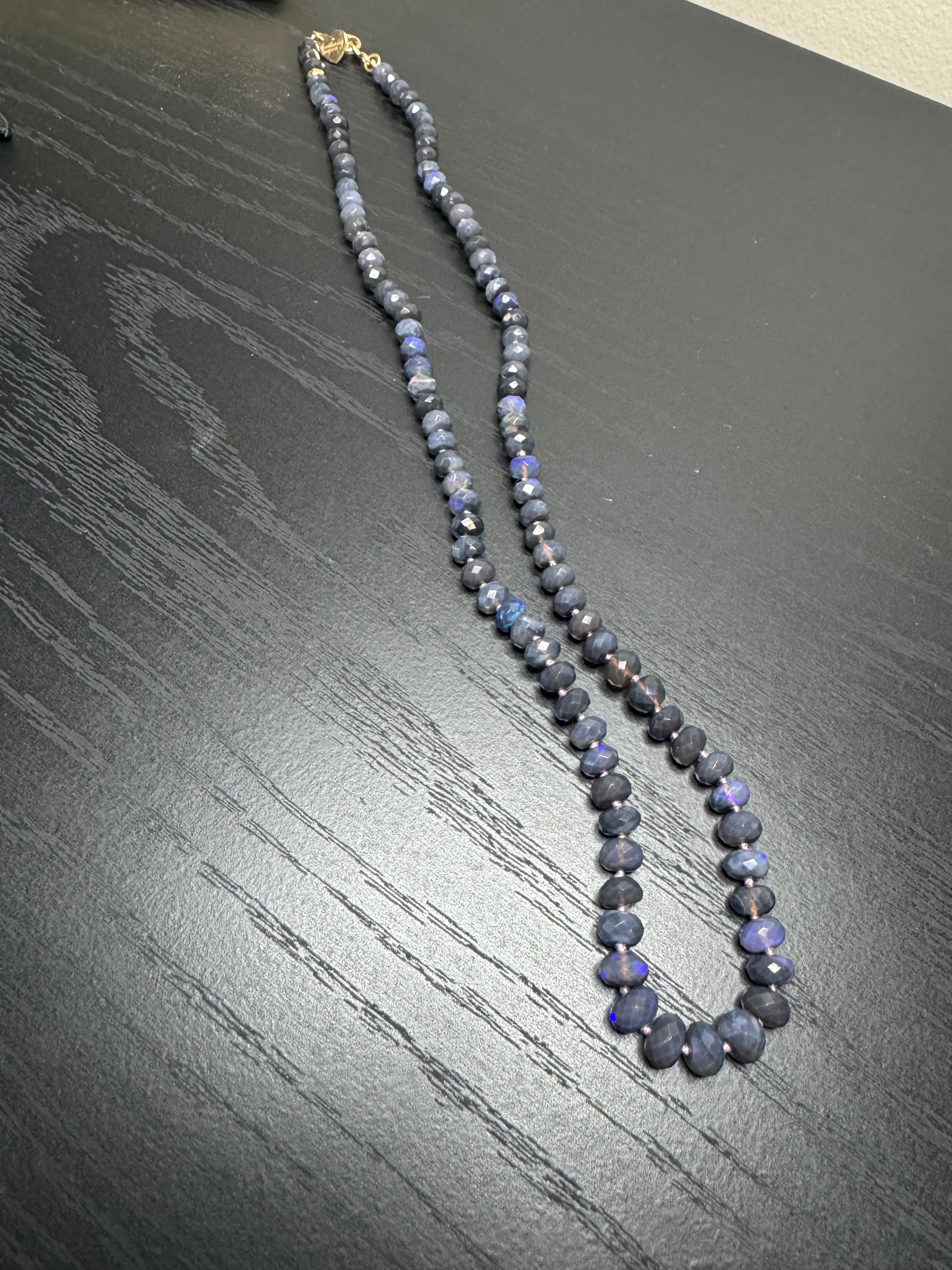 Stellar Australian Black Opals Knotted Necklace 14k Gold
